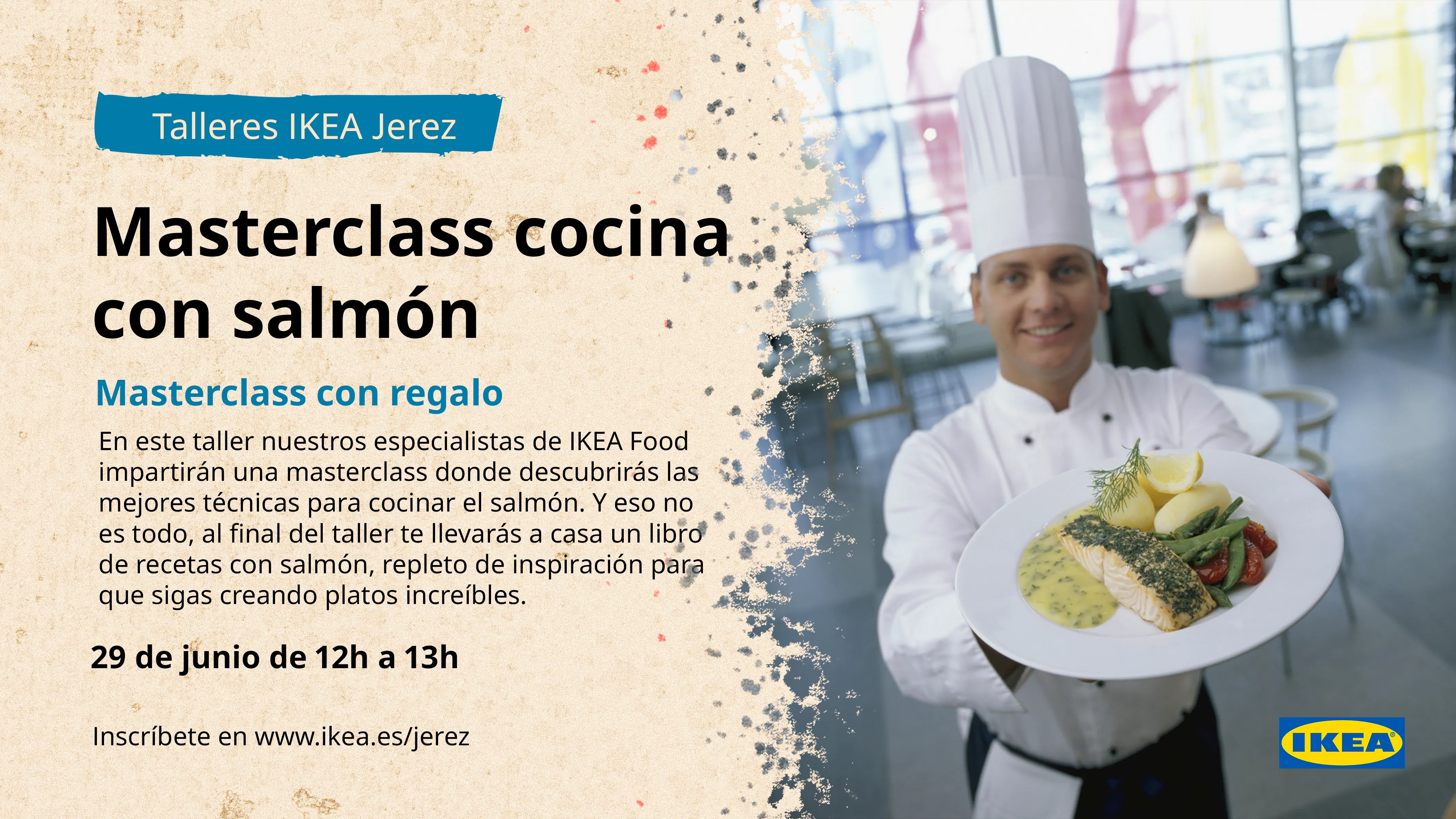 En este taller nuestros especialistas de IKEA Food impartirán una masterclass donde descubrirás las mejores técnicas para cocinar el salmón. Y eso no es todo, al final del taller te llevarás a casa un libro de recetas con salmón, repleto de inspiración para que sigas creando platos increíbles.