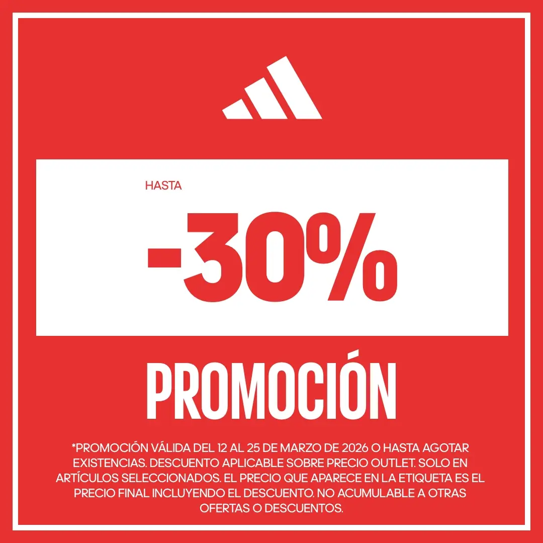 *Promoción válida del 12 al 25 de marzo de 2026 o hasta agotar existencias. Descuento aplicable sobre precio outlet. Solo en artículos seleccionados. El precio que aparece en la etiqueta es el precio final incluyendo el descuento. No acumulable a otras ofertas o descuentos.